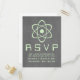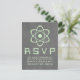 Cute and nerdy Atomic Chalkboard Wedding Response Card featuring a simple atomic symbol in mint green on a chalkboard look background. This geeky and fun wedding RSVP postcard is perfect for the science enthusiast couple! Easy to customise, simply add the details of your wedding in the spaces provided. Click "Customise It" to find more personalisation options.