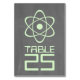 Cute and nerdy Atomic Chalkboard Table Number Card featuring a simple atomic symbol in mint green on a chalkboard look background. This geeky and fun table card is perfect for the science enthusiast couple! Easy to customise, simply add the appropriate table number(s) in the space provided. Click "Customise It" to find more personalisation options.
