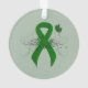 Green ribbon with a butterfly, circles, and swishes. The green ribbon is associated Glaucoma Awareness in January. Bipolar Disorder Awareness Ribbon in February. Kidney Disease Awareness, Kidney Donation Awareness, and Mental Retardation Awareness in March. Environment Awareness, Living Organ Donation Awareness, Organ Donation Awareness, Organ Transplant Awareness, and Tissue Donation Awareness in April. Cerebral Palsy Awareness, Childhood Depression Awareness, Mental Health / Mental Illness Awareness, Missing Children Awareness, Neurofibromatosis Awareness, Spinal Cord Injury Research, Tourette's Syndrome Awareness in May. Tourette's Syndrome Awareness in June as well. Mitochondrial Disease Awareness in September. Depression Awareness, Manic Depression Awareness, and Literacy Awareness in October. Bone Marrow Donation Awareness in November. Eye Injury Prevention Awareness, Fanconi's Syndrome Awareness, Fibrodysplasia Ossificans Progressiva, Freedom Awareness, Growth and Rebuilding Awareness, Kidney Cancer, Nephrotic Syndrome Awareness, Neural Tube Defects Awareness, Primary Sclerosing Cholangitis, Safe Driving Awareness, Save Darafur Awareness, Stem Cell Donor Awareness, Stem Cell Research Awareness, Traumatic Brain Injury Awareness, Von Hippel Lindau Awareness, Worker Safety Awareness.