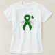 Green ribbon with a butterfly, circles, and swishes. The green ribbon is associated Glaucoma Awareness in January. Bipolar Disorder Awareness Ribbon in February. Kidney Disease Awareness, Kidney Donation Awareness, and Mental Retardation Awareness in March. Environment Awareness, Living Organ Donation Awareness, Organ Donation Awareness, Organ Transplant Awareness, and Tissue Donation Awareness in April. Cerebral Palsy Awareness, Childhood Depression Awareness, Mental Health / Mental Illness Awareness, Missing Children Awareness, Neurofibromatosis Awareness, Spinal Cord Injury Research, Tourette's Syndrome Awareness in May. Tourette's Syndrome Awareness in June as well. Mitochondrial Disease Awareness in September. Depression Awareness, Manic Depression Awareness, and Literacy Awareness in October. Bone Marrow Donation Awareness in November. Eye Injury Prevention Awareness, Fanconi's Syndrome Awareness, Fibrodysplasia Ossificans Progressiva, Freedom Awareness, Growth and Rebuilding Awareness, Kidney Cancer, Nephrotic Syndrome Awareness, Neural Tube Defects Awareness, Primary Sclerosing Cholangitis, Safe Driving Awareness, Save Darafur Awareness, Stem Cell Donor Awareness, Stem Cell Research Awareness, Traumatic Brain Injury Awareness, Von Hippel Lindau Awareness, Worker Safety Awareness.