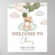 Green Baby Bear Balloon Baby Shower Welcome Poster
