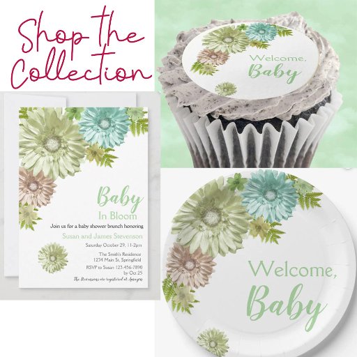 Customise by editing to change the wording if you'd like to in the listing. See the other coordinating items in my shop by checking out the green baby shower brunch baby in bloom collection or searching for baby shower brunch in my shop.