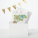 These pretty, floral green gender neutral Baby In Bloom favour bags would be the perfect addition to your celebration. Features green gerbera daisy and hydrangea blossom flowers with green ferns and smaller pink and blue pastel daisies on a white background.