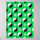 Green Background Chinese Zen yin and yang text and Symbols seamless repeat pattern Design