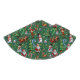 Christmas-themed pattern featuring Santa Claus, reindeer, snowmen, elves, Christmas trees, candy canes, and snowflakes on a green background