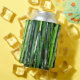 Can cooler with an Asian theme. A photograph of a row of green and yellowish green bamboo stems.