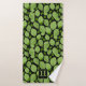 Green Basil Leaf Herb Pattern Botanical Monogram Bath Towel Set. Green basil leaves in a pattern on a black background. Add your monogram and name.