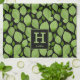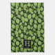 Green Basil Leaf Herb Pattern Botanical Monogram Tea Towel