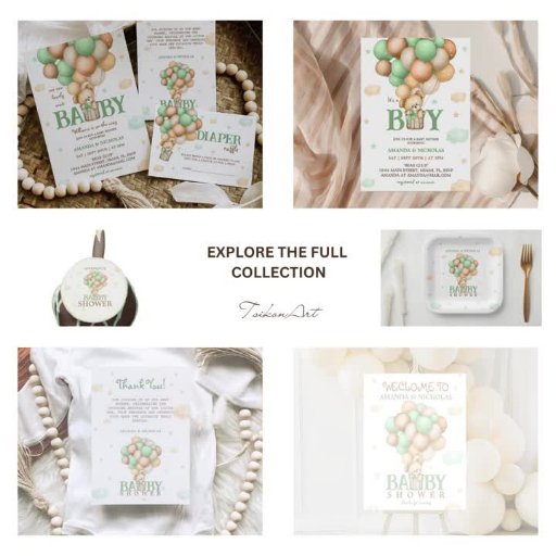 Float into a world of whimsy and wonder with our Teddy Bear Green Hot Air Balloon Baby Shower Invitation! Set against a backdrop of dreamy skies, a cuddly teddy bear drifts in a charming hot air balloon, inviting your loved ones to celebrate the arrival of your little bundle of joy.