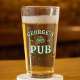 Cool personalised beer glasses for your home pub or home bar with your name in curved letters above beer glasses clinking, the year your pub was established and PUB in white letters with a green shadow that makes the text pop. A great gift for the man in your life who has a home pub or home bar.