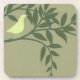 Green Bird Perched on Green Branch Coaster