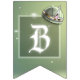Joining the party theme is a party bunting banner with the letters "Happy Birthday" on each flag and a light green gradient background with a tiara hanging on the side of each letter inside the opening.  As part of the "Black Princess" theme this is a cute design for girls on their special day of celebration.