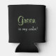 Great can cooler with a fun design stating your colour so you know which can is yours! The background is black. Text for the quote is "Green is my colour!" in a nice typography mix of green and white. Check out our other "my colour" can coolers too!
