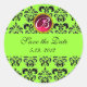 GREEN BLACK DAMASK MONOGRAM ,red ruby Classic Round Sticker
