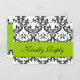 Green Black Damask Wedding Invitation RSVP Card. Customise with your information.