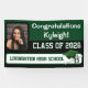 This banner can be fully personalised with the student's photo, name, message, class year, and town & school name. It includes matching cap and diploma artwork, which may also be customised. If you envision a different design, please contact us and we would be happy to customise it for you!