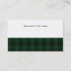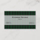 Stylish plaid business card done in the traditional green and black Graham family tartan pattern. The front of the card has a black edged semi transparent white band, across the middle of the card, with custom black text. The back of the card is done in white, with a strip of plaid at the bottom, and black text on the white portion. Personalise all the text to suit your needs. Handsome and professional looking business card.