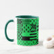 Green and Black Mixed Patterns Patchwork Design of 16 Different Design illustration of Fleur-de-lis, crowns, hearts, Polka Dots, Greek key, irregular Abstract, Houndstooth, Trees, Harlequin, Stripes, Check, umbrella, anchor, Chevron, blob and flower floral illustration Designs.