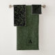 Green black pattern leaves monogram bath towel set