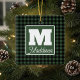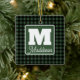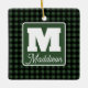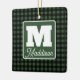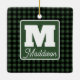 Green & Black Plaid Monogram Name Christmas Ceramic Ornament