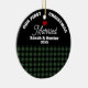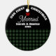 Commemorate your engagement with this charming rustic Christmas ornament from Plaid Perfection. Designed with a split background—classic green and black buffalo plaid on the bottom and sleek black on top—this festive ornament features the phrase *Our First Christmas Married* curved along the top. Personalise with the couple’s names and year to create a keepsake that celebrates love and new beginnings. Perfect as a gift for engaged couples or as a special addition to your own tree, this round ornament is a timeless way to mark this milestone and treasure the memory for years to come.