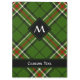Green, black, red and white tartan design. Seamless pattern. Custom text and monogram.