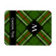 Green, black, red and white tartan design. Seamless pattern. Custom text and monogram.