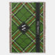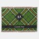 Green, black, red and white tartan design. Seamless pattern. Custom text and monogram.