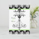 Pretty Green, Black, and White Chandelier wedding invitations in 5x7 inch size, easy to customise with all your wedding ceremony and reception information before ordering. We have the matching wedding RSVP cards, stickers, thank you notes, save the date magnets, and much more.