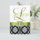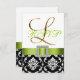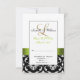 Green Black White Damask Initial L Wedding RSVP Invitation