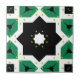 Elegant modern ceramic tile design featuring a seamless pattern made of geometric shapes in emerald green, black and white.