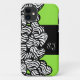 Green black white zebra pattern heart monogram Case-Mate iPhone case