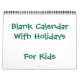 In green Blank Calendar With Holidays for kids with green wire you can find green customisable text on front page and United States events and holidays are added too.