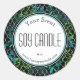 This sticker is an editable handmade soy wax candle melt label for someone who makes their own scented wax products. The design features blue and green foliage growing in front of a chain link fence on a black background. Personalise this sticker with your own personal or business details. You can find other matching products in my city foliage category.