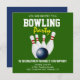 Green Blue Modern Bowling Party Birthday Invite