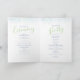 Double-sided modern calligraphy white and green blue dab modern art wedding program. Edit this wedding program with your own name, dates, ceremony wording, wedding party attendants and thanks. Simple yet elegant program simply replace sample text with your own wedding information details. Other matching items and colour options available. Original modern art watercolor dabs and design by www.mylittleedenweddings.com