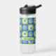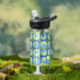Green Blue Square Dot Geometric Pattern water bottle, framed in pink with a place to add your name. Originally it was designed for a wedding collection I have. I loved the pattern so much I thought it would be great on a variety of items. I think it makes a fun personalised water bottle.