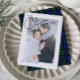 This beautiful, modern Trendy Green and Blue Plaid Merry Christmas Script Photo Christmas Holiday Card features your vertical wedding photo behind a white border. The word 'Merry' appears in breakout border fashion in the upper left, followed by the word "Christmas" in a beautiful, bold hand lettered typography, both in dark blue. The card is personalised with your name and year at bottom left, in the white frame margin, also breaking out of the border, and features a stylish dark blue and green plaid Scottish tartan backer. Perfect for sending warm holiday wishes to family and friends, this card captures the elegance of a special moment and the joy of your new journey together. Ideal for winter weddings, holiday announcements, or thank you notes, this card is as versatile as it is timeless.