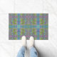 Colourful geometric shapes pattern, custom made artwork in prominent shades of green, blue, purple, pink and with additional shades of silver, grey, gold. Elegant trendy digital art design.