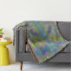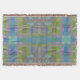 A quality printed throw has its advantages. This is a much finer weave throw than its loopier cousins, and though lighter, it is worth the investment for custom room accessorizing. The back is much prettier than the typical brown, and the fringe on the long sides very vivid, the selvage nicely done. Before photographing, I washed the throw in cold water, delicate, with a thicker woven throw the same size. On tumble dry low, this throw was dry in half the time as the other. This is a very practical quality if you use throws for furniture covers or to wrap up in frequently. The sleekness of the fabric makes it a great layer for accenting or protecting without the feeling of sitting on too much stuff. Perfect for napping or when you feel a light chill coming on. The color printing is beautiful and on this fabric, matched the design and color of my Photoshop image. This is an advantage for blending room fabrics and colors. The fringe on the short sides prints the colors from the design image and therefore varies from the side fringe. I streaked a white fractal line through the plaid pattern to give the illusion of weaving. This printed as crisp as an illusory thread, and put some white in the short side fringe, showing another advantage of print vs loomed- for artistic purposes, line lines, detail, and color integrity can be planned and preserved. My loomed throws have color limitations and more of a needlepoint texture. Print throws reproduce an exact image. The throw felt a little stiff straight out of the package, but this went away in the first delicate wash. Of course I searched the wash water for ink or bleeding and there was none.