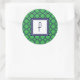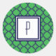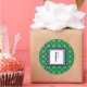 Contemporary green/blue quatrefoil pattern monogram stickers.