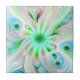 Green + Blues Abstract Fractal Flower Ceramic Tile