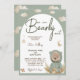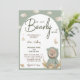 This gender-neutral baby shower invitation inspired by bohemian rustic style. Picture a cute bear dressed in a hoodie, sitting amidst the serene beauty of the pampas floral grass in soothing sage green tones. This delightful scene captures the essence of nature and tranquillity, making it an ideal choice for celebrating the arrival of a new little one.