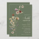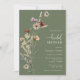 Green Boho Bridal Shower Invitation. This stylish & elegant bridal shower invitation features gorgeous hand-painted watercolor wildflowers arranged as a lovely bouquet and elegant calligraphy script that's perfect for spring, summer, or fall weddings. Find matching items in the Sage Green Boho Wildflower Wedding Collection.