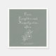 This green boho love laughter and happily ever after napkins are perfect for a rustic wedding. The design features watercolor apple blossoms and flowers in a green background.