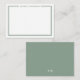 Add a personal touch to your stationery with this clean and modern note card. The front features a white background with a classic double border in soft sage green and has space to display your full name in a timeless serif font. The design is simple but polished, offering a versatile look that works for any occasion. On the back, a white initial monogram adds a subtle detail against the solid sage green background for a soft, stylish contrast.
