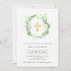 This elegant botanical baptism invitation features a green wreath of leaves surrounding a faux gold cross, on a clean white background. We have used art from LABFcreations.
