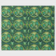 Green botanical-themed wrapping paper featuring repeating circular patterns with leafy designs. The image shows both an unrolled and flat view.