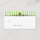 This apple green and white striped place card has brown scrolled accents and matches the wedding invitation shown below. If there are any other matching items you require, please email your request to niteowlstudio@gmail.com.