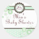 This modern customisable Baby Shower sticker features green flowers on a green & white polka dot background. Customise it by adding your details in the font of your choice!